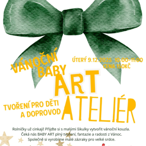 09.12.2025 Zveme vás na tvořivou hodinku plnou zábavy a kreativity, která je určena pro děti do 4 let v doprovodu. Každé setkání se zaměřuje na jiné téma, během kterého děti tvoří a rozvíjejí svou fantazii. Ve skupině maximálně šesti dětí si užijete klidnou a přátelskou atmosféru, kde každé dítě dostane dos...