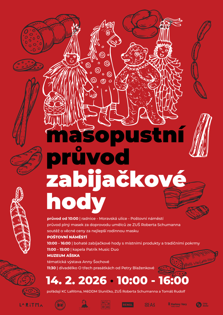 14.02.2026 Společně s LaRitma a Základní umělecká škola Roberta Schumanna Aš vás zveme na masopustní průvod. Přijďte si užít den plný masek, hudby, divadla a tradičních chutí. Masopustní průvod vyrazí v 10:00 od radnice, projde Moravskou ulicí a zamíří na Poštovní náměstí. Tam na vás čekají zabijačkové s...